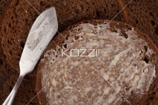 Close-up image of a rye bread with butter spread